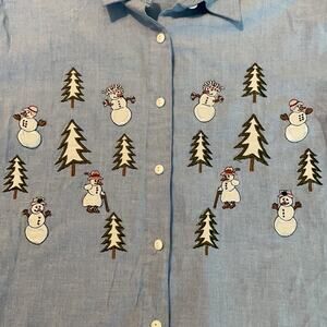 Falls Creek Vintage Christmas Snowman Button Down Size Small