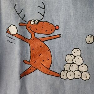 Falls Creek Vtg Christmas Button Up Shirt Santa Reindeer Snowfight 18W