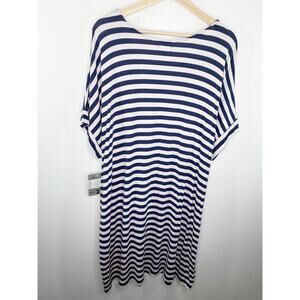 Falls Creek Women TShirt Dress Size 1X Blue Pink Striped Belted Casual NWT Beach