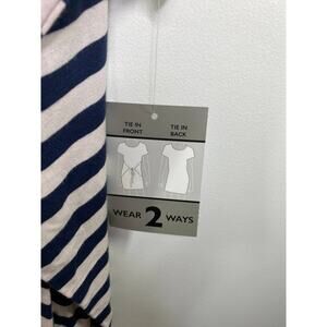 Blue and pale pink stripe convertible tunic dress. Short sleeves, ties in the front of the back, mini length.