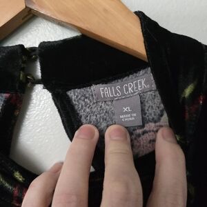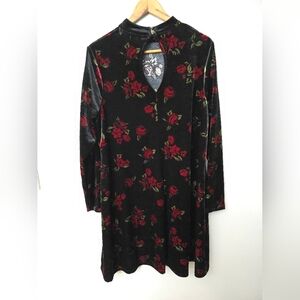 Falls Creek Womens Dark Floral Velvet Dress Size XL Black Stretch Whimsigoth