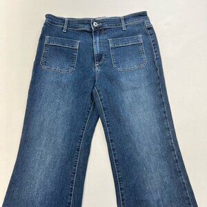 Falls Creek Womens Flare Jeans Blue Stretch Patch Packets Stone Wash Mid Rise 8