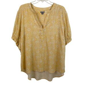 Falls Creek Womens Size 2X Yellow & White Floral Print Linen Blend Shirt
