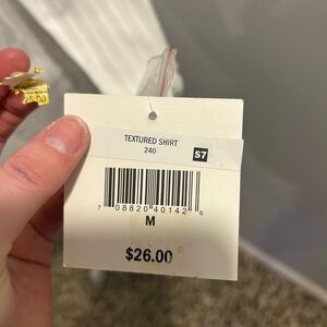 NWT, excellent condition, pet/smoke/stain free, cuffed sleeves, collared neck, button down, extra buttons included
