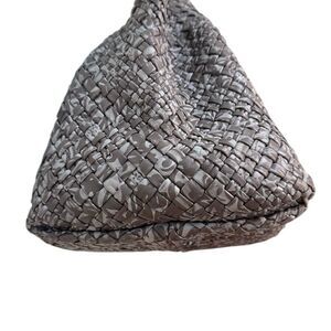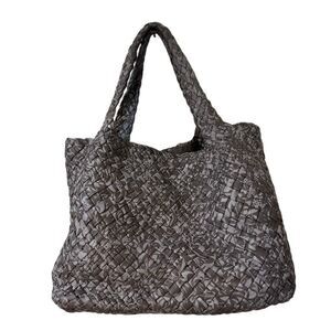 Falor Firenze Large Tote Carryall Handbag Grey Hand Woven Leather Flaw