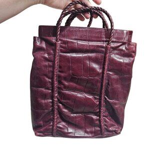 Falor Genuine Leather Burgundy Tote Bag Twisted Handles Made in Italy
