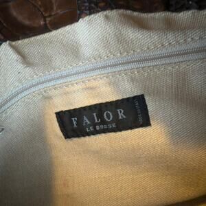 Falor Le Borse Leather Tote Bag Braided Handles Brown Woven Made in Italy