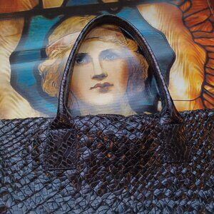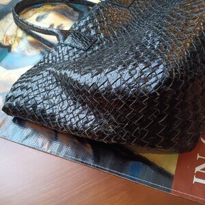 Falor Woven Leather Tote Made in Italy. Like many on the retail market with the exception of the handles that are solid, rather than woven handles for sustainability.