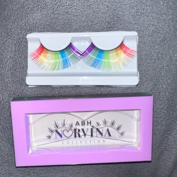Anastasia Beverly Hills Norvina false bottom lashes. Never used. Never got around to using them and no brand rainbow lashes also never used. Sold together.