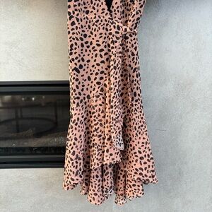 Fame And Partners - Tan & Black Leopard Print Short Sleeve Wrap Dress, Size 0