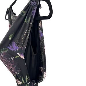 Fame And Partners Women's Black Purple Floral Print Maxi Blouson Dress Size 4