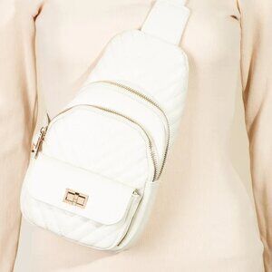 *This elegant white leather crossbody bag features premium genuine leather construction with sophisticated quilted detailing. The adjustable crossbody strap ensures comfortable wear while the gold-tone hardware adds luxury appeal. Perfect for modern women seeking hands-free convenience without compromising style. The compact design includes a front zip pocket and secure main compartment, making it ideal for daily essentials. The pristine white color offers versatile styling options for both casual and formal occasions.