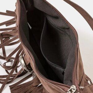 Fame Faux Suede Cascade Fringe Shoulder Bag
