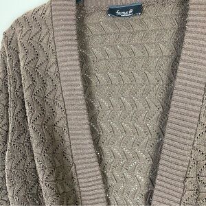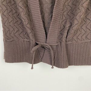 Fame Knitworks Brown Knit Cardigan Shrug Sweater with Tie Waist Y2K 90s Vintage