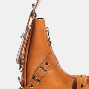 Fame Multi Belt Strap Accent Shoulder Faux Tan Leather Women's Crossbody Bag