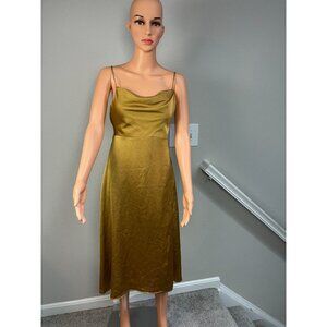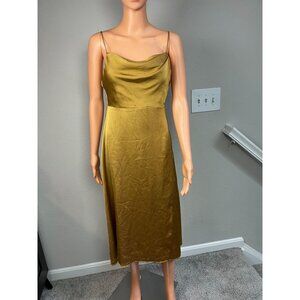 Fame Partners Evening Slip Dress Square Neck Back Zip Metallic Gold Women's US 0