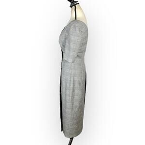 Fame & Partners Everly Dress Women's 4 Black Gray Plaid Midi Short Sleeve V-Neck
