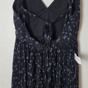 Fame Partners Gown Draped Pleated Blue Black Spaghetti Strap Maxi Dress Floral