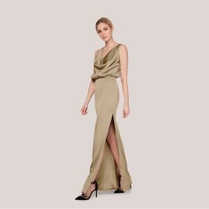 Fame & Partners Libra Satin Draped High Slit Maxi Dress Sz 2