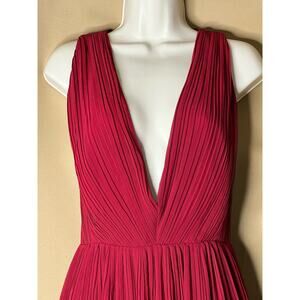 Red Georgette gown. 100% polyester light Georgette. Sleeveless. V-neckline. Hidden back zipper closure. Fully lined.
