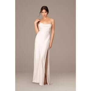 Fame & Partners Rosabel Cowl Neck Satin Gown with Spaghetti Straps - S