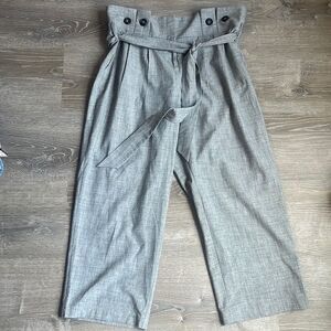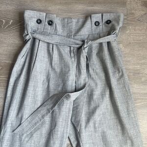 Grey wool twill (97% Cotton, 3% Spandex). Pants. Attached belt