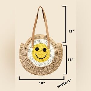 Fame Straw Braided Round Happy Face Tote Bag 10070024861