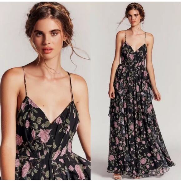 Fame and Partner x Free People Floral Rose Queen Anne Maxi Tiered Dress (hemmed)