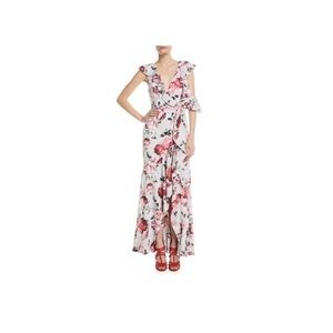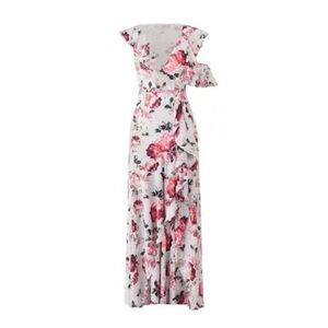 Fame and Partners Beckham Floral Georgette Ruffle Maxi Dress Pink Red White 6