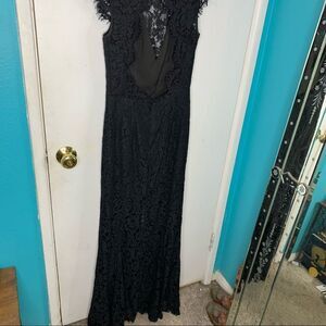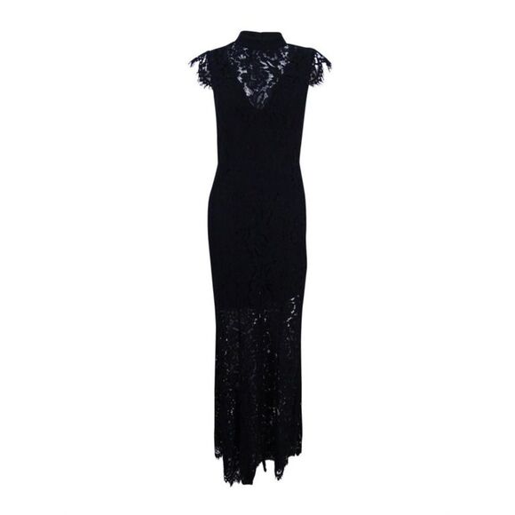 Elegant black lace maxi dress. Sleeveless design. Perfect for evening wear.