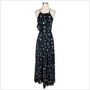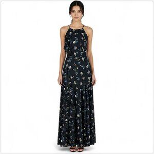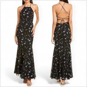Fame and Partners Black Valentina Floral Ruffle Evening Gown Dress NWT 2 and 4