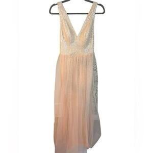 Fame and Partners Blush Pink Sequin and Tulle Open Back Gown Size 4