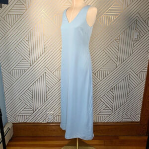 Brand new with tags still attached Fame and Partners Custom Blue Bridesmaid Dress. Pale blue classic v-neck sleeveless sheath midi slip dress. Zip closure at back. Lined.