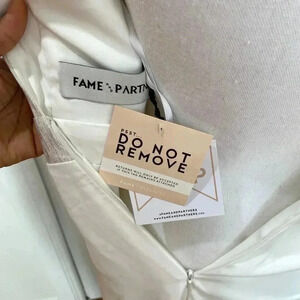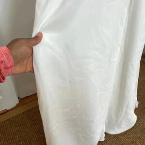 There is one light blue faded stain towards the back and a small stain near the foot of the dress. I believe both are removeable but have not tried. Please see pictures. Other than that it is in perfect condition.