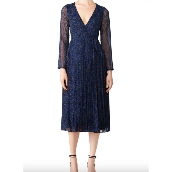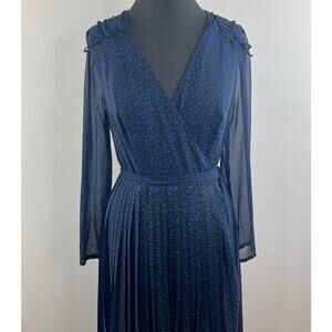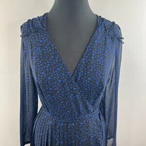 Fame and Partners Joslyn Blue Black Stone Dot Chiffon V-Neck Waist Maxi Dress 8