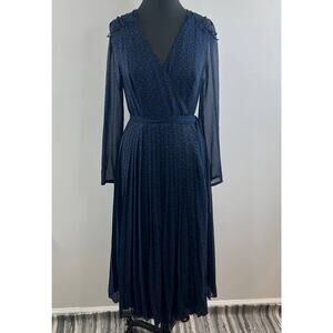 Fame and Partners Blue Black Stone Dot Chiffon V-Neck Tie Waist Maxi Dress LS