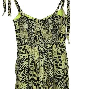 Make a Major Summer Statement in This Neon Green Animal-Printed Fame & Partners Wide-Leg Jumpsuit Finished with a Sexy Budoir-Inspired Bodice.