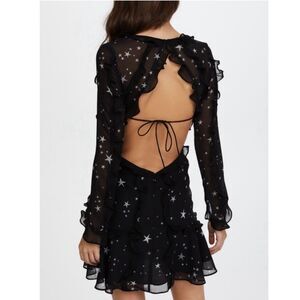 Fame and Partners Kye Night Sky Star Print Ruffle Open Back Mini Dress | NWT Siz