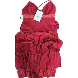 Fame and Partners NWT Felicity Midi Dress Tiered Cocktail Burgundy Size 8