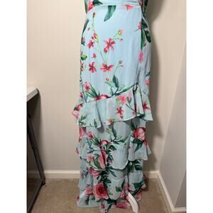 In excellent condition. Size 4. Absolutely beautiful floral design. Tiered skirt, with slit. Measurements below.