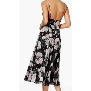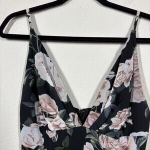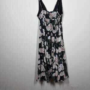 Fame and Partners Size 8 Fit & Flare Midi Shift Party Dress Black White Floral Deep V-Neck Hourglass Sleeveless