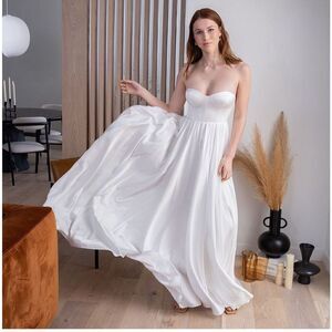 Worn once!!!The Ambrose is a fit-n-flare strapless dress. It has a sweetheart neckline, a bustier style bodice with structured cups, fully gathered circular skirt with invisible zipper opening at back.