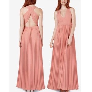 Fame and Partners V neck Open Back Pleated Gown in Mauve Pink