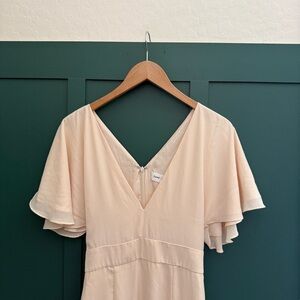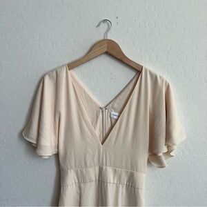 Fame and Partners V-Neck Cream Flutter Sleeve Dress