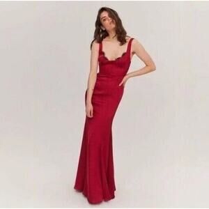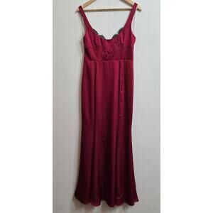 Fame and Partners Womens Ara Red Satin Gown Dress Size 8 Romantic Vamp Lace Trumpet