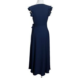 Style Tags: wrap dress, ruffle sleeve, a-line midi, navy occasionwear, flounce detail