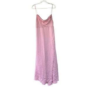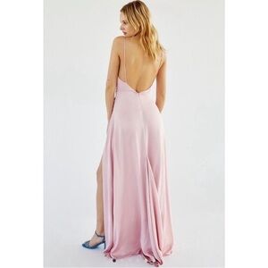 Fame and Partners x Free People Collab Rosabel Satin Maxi Dress. Women’s size 12. Color is Lilac. Brand new with tags. Gorgeous satiny material with a draped neckline, spaghetti straps, low back and a high slit at the leg. Perfect for Prom, weddings or any special occasion. The dress has been stored, so is quite wrinkly and will need to be pressed prior to wearing. The color is somewhere between a Pink and Pale Purple in my opinion.
