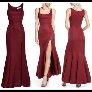 A long mermaid skirt is designed with a high slit ideal for showing off your legs as you twirl across the dance floor in this lustrous evening dress.
