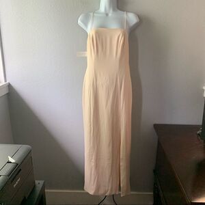 Very early 2000’s strappy minimalist vibes! Midi length. Simple sheath style. Color is light nude, stock photo is the same dress in light pink.