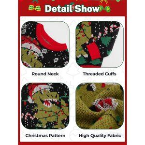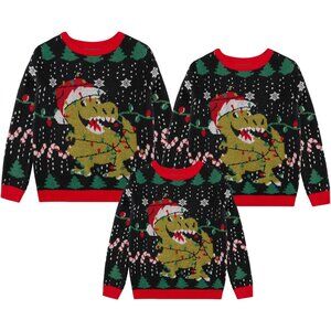 Family Christmas Sweater — Perfect for the whole crew! Festive, fun, and cozy. Size: Large Color: Black and Dinosaur Condition: Brand new, no flaws. Features: These knit Christmas sweaters are soft, warm, and perfect for spreading holiday cheer. They feature humorous patterns like reindeer, snowflakes, Christmas trees, and dinosaurs—sure to turn heads and spark smiles. Material: 100% polyester Care Instructions: Machine washable — super easy to keep fresh. Great for: Family matching outfits, Christmas parties, casual holiday gatherings, or even office holiday fun. Great for women, men, and kids across various sizes. Ships quick from a smoke-free, pet-free home. Bundles welcome to save!